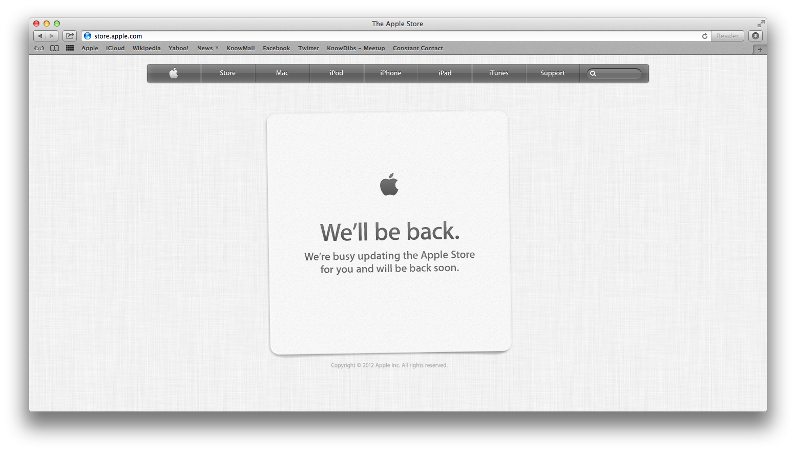 The Apple Store website is being updated due to the announcement of the iPhone 5 and any of the other speculated products to go with it! Stay tuned as we update our blog to bring you the most current information!